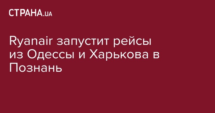 Ryanair запустит рейсы из Одессы и Харькова в Познань