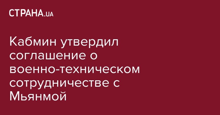 Кабинет министров утвердил соглашение с правительством Мьянмы о военно-техническом сотрудничестве. Решение было принято на заседании правительства. Об этом сообщает 112.ua.