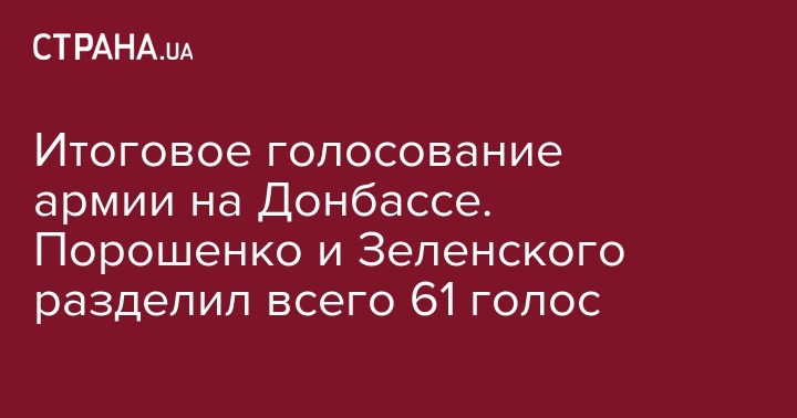 Петр Порошенко получил 40% голосов военнослужащих на фронте. На спецучастке в военном городке учебного центра ВСУ в Старичах, где проходит подготовка частей ВСУ с инструкторами НАТО, Зеленский обогнал Порошенко на 305 голосов: