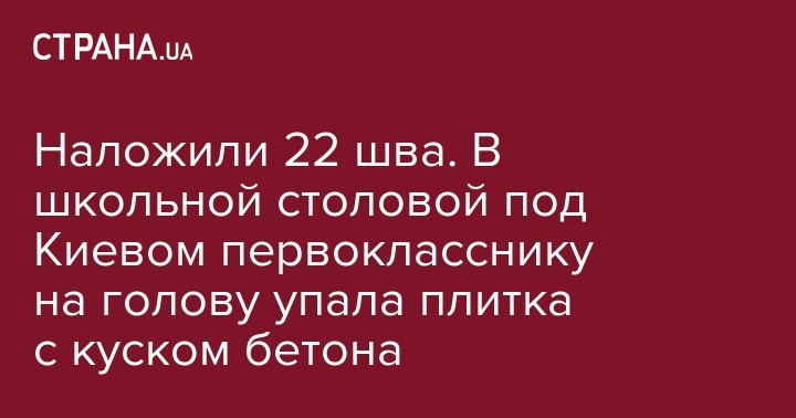 Наложили 22 шва. В школьной столовой под Киевом первокласснику на голову упала плитка с куском бетона
