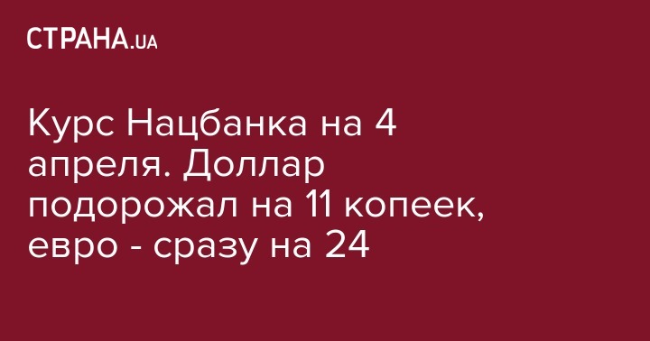 Курс Нацбанка на 4 апреля. Доллар подорожал на 11 копеек, евро - сразу на 24
