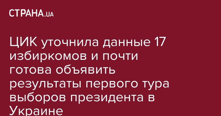 Напомним, 5 апреля заместитель председателя ЦИК Евгений Радченко предположил, что окончательные результаты первого тура выборов президента предварительно могут быть установлены в воскресенье, 7 апреля.