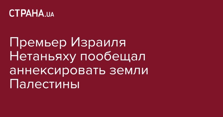 Премьер-министр Биньямин Нетаньяху заявил, что намерен присоединить к Израилю поселения евреев, что расположены на палестинских землях на Западном берегу реки Иордан. Об этом он сообщил в эфире национального ТВ, передает ТАСС