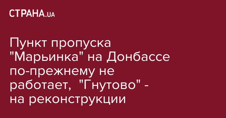 "На КПВВ "Гнутово" продолжается реконструкция, мероприятия продлены до 9 апреля. А на КПВВ "Марьинка" по решению командующего ООС, из-за угрозы для гражданского населения в связи с обстрелами вооруженными формированиями РФ дорожного коридора, временно приостановлен пропуск людей и транспортных средств", - уточнили в Госпогранслужбе.