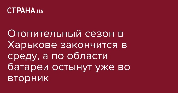 В Харьковской области завершается отопительный сезон. Распоряжение о его окончании подписала глава Харьковской областной государственной администрации Юлия Светличная, сообщает "Интерфакс-Украина".