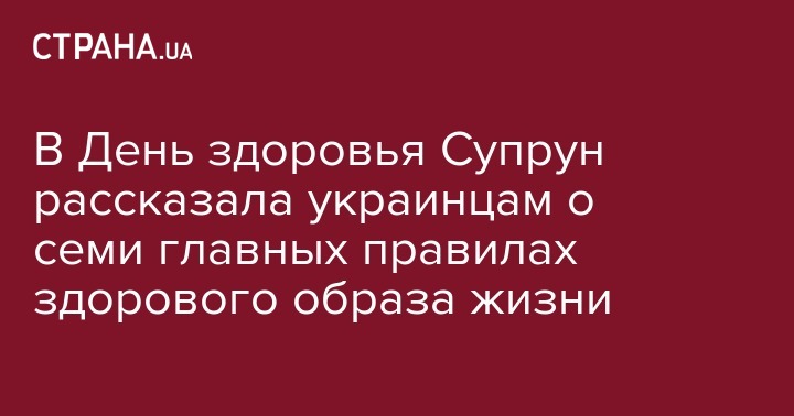 1. Питание. И.о.министра здравоохранения считает, что питание является основой здоровья. "В современном темпе жизни придерживаться здоровой диеты непросто, но крайне необходимо, если хотите уменьшить риски заболеть сердечно-сосудистые болезни, диабет 2 типа и некоторые виды рака. Чтобы жить долго и здорово, уменьшите в рационе, по крайней мере, булочки, сахар, соль и колбасу. Не забывайте пить воду!", - считает Супрун.