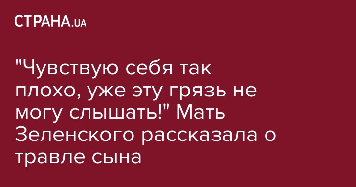 "Чувствую себя так плохо, уже эту грязь не могу слышать!" Мать Зеленского рассказала о травле сына