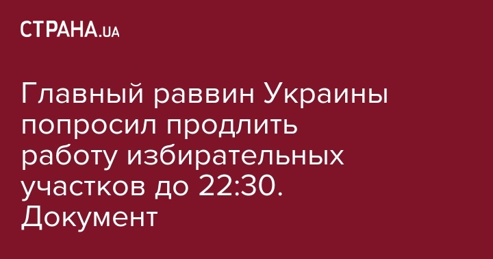 "В связи с тем, что второй тур выборов президента Украины приходится на второй день праздника Песах, во время которого по иудейским законам запрещена какая-либо работа до восхода звезд, и с целью предоставления гражданам, которые исповедуют иудаизм, возможности для реализации своего избирательного права, прошу 21 апреля 2019 года продлить работу некоторых избирательных участков до 22:30, хотя бы по одному участку в больших городах", - говорится в письме.