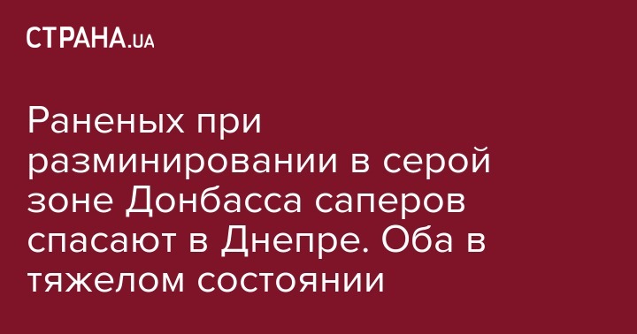 В Днепр военными вертолетами эвакуированы пиротехники ГСЧС, которые во вторник, 9 апреля, получили ранения во время разминирования территории в серой зоне Донбаса - возле села Зайцево Бахмутского района. Об этом сообщила советник главы Днепропетровской облгосадминистрации Татьяна Губа на своей странице в соцсети.