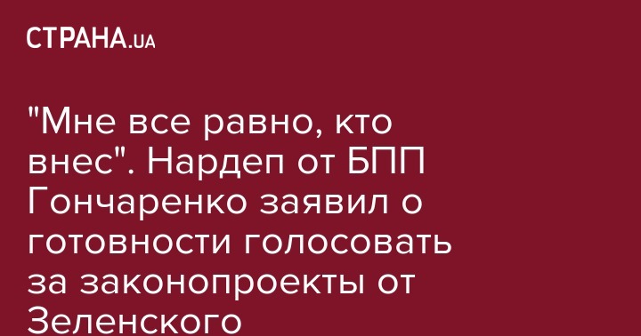 "Мне все равно, кто внес". Нардеп от БПП Гончаренко заявил о готовности голосовать за законопроекты от Зеленского