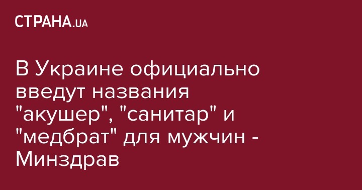 В Украине официально введут названия "акушер", "санитар" и "медбрат" для мужчин - Минздрав
