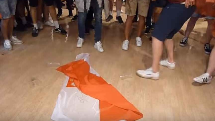 Украинский журналист снял на видео, как английские болельщики глумятся над польским флагом, фото: Евгений Блажко