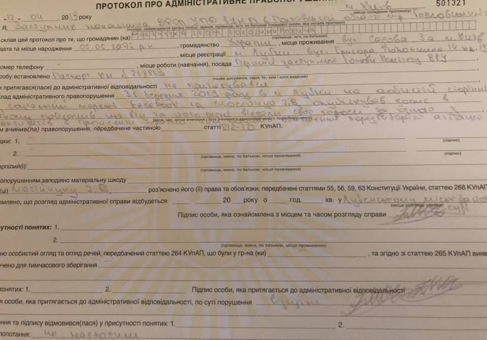 "Я вину не признаю, и буду отстаивать свою правоту в суде, но как законопослушный гражданин составления админпротокола не избегал!", - прокомментировал пост Апостола в соцсети Мосийчук.