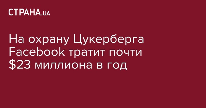 Компания Facebook сообщила, что в 2018 году выделила гендиректору Марку Цукербергу около $23 млн на обеспечение безопасности, что в 4 раза больше, чем в 2016 году. Об этом сообщает CNBC со ссылкой на финансовые документы компании, поданные в Комиссию по ценным бумагам и биржам США.