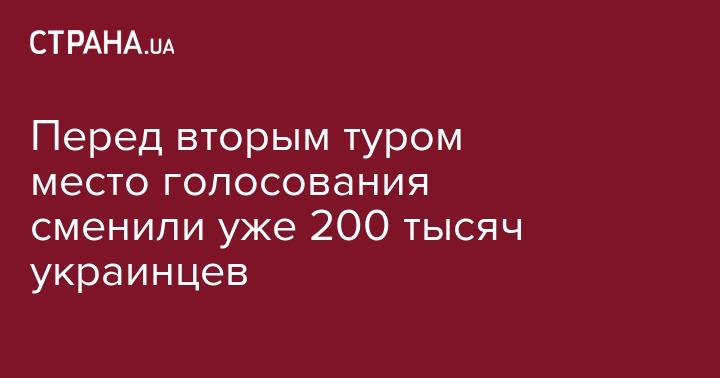 По состоянию на 13 апреля место голосования перед вторым туром выборов президента сменили 201 189 избирателей. Об этом сообщается на сайте Госреестра избирателей Украины.