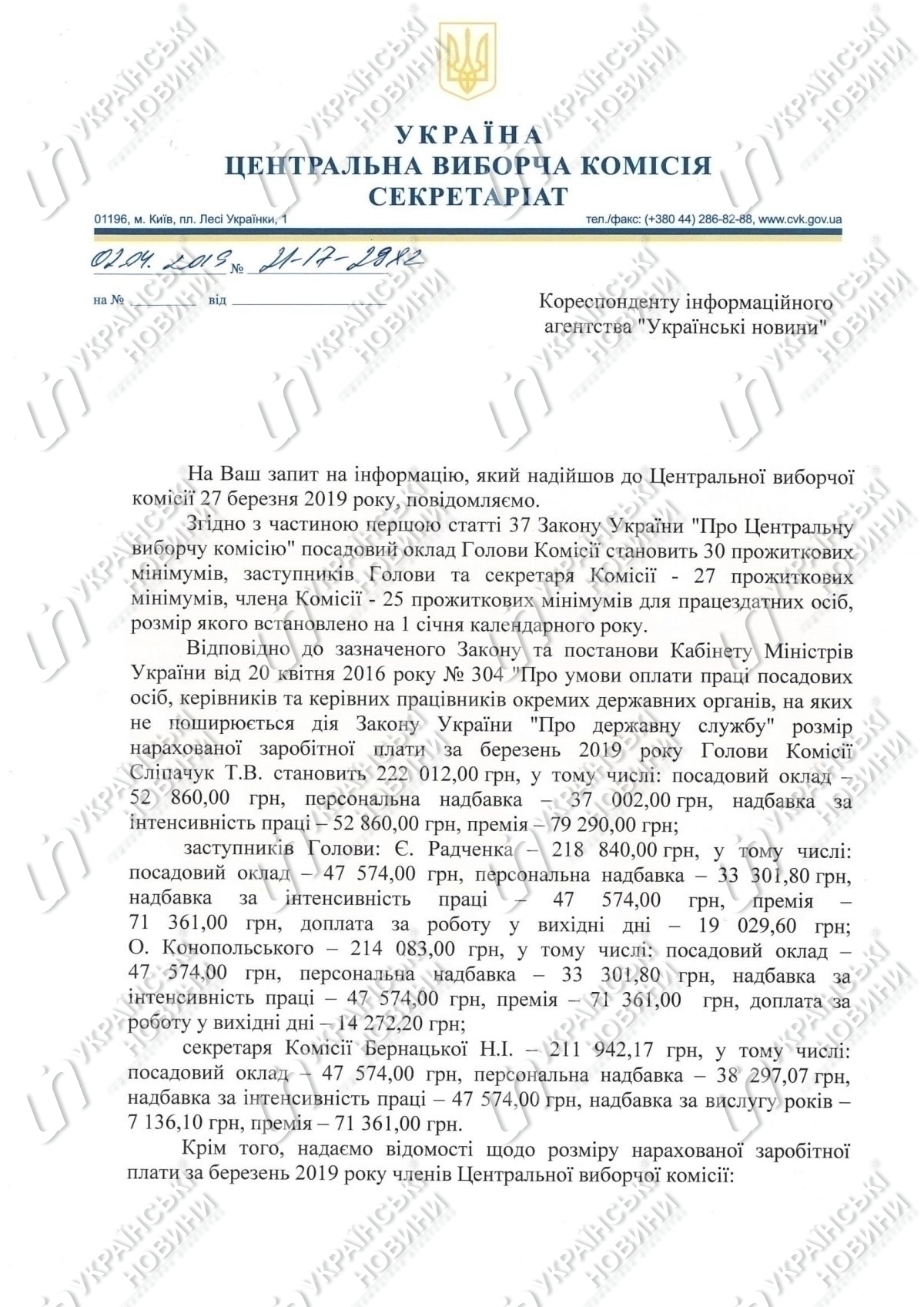 При этом у семи членов ЦИКа зарплата за март была выше, чем у председателя комиссии - от 222,5 тысяч до 243 тысяч гривен.