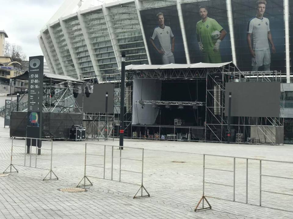 В Киеве возле стадиона НСК "Олимпийский" сооружают сцену, для предвыборного митинга президента Украины Петра Порошенко.