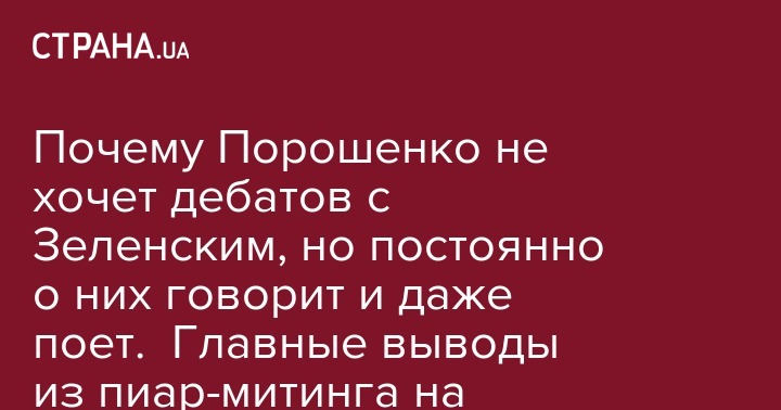 Почему Порошенко не хочет дебатов с Зеленским, но постоянно о них говорит и даже поет. Главные выводы из пиар-митинга на Олимпийском