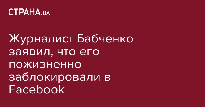 Журналиста и блогера Аркадия Бабченко, который переехал из России в Украину и активно критикует российскую власть, пожизненно заблокировали в социальной сети Facebook. Об этом сам Бабченко рассказал в эфире крымскотатарского телеканала ATR.