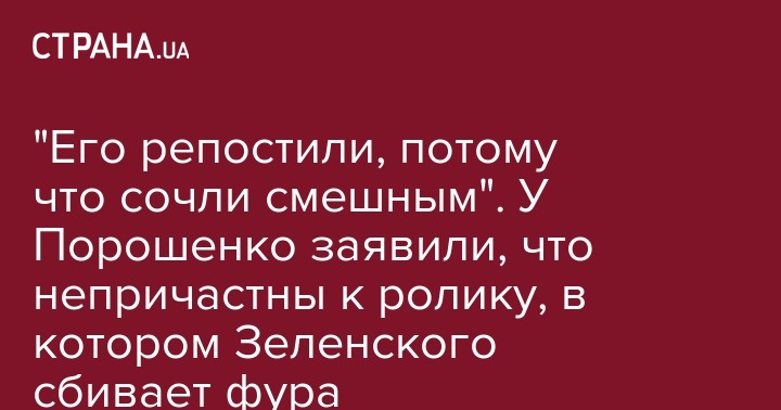 "Его репостили, потому что сочли смешным". У Порошенко заявили, что непричастны к ролику, в котором Зеленского сбивает фура