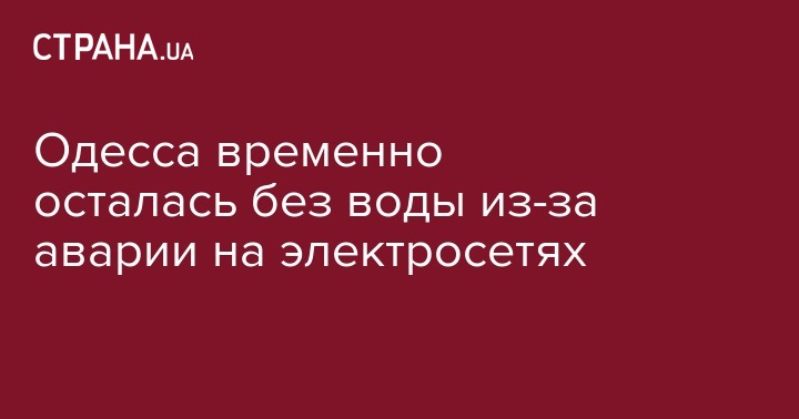 В Одессе из-за аварии в электросетях обесточена главная канализационно-насосная станция и снижена подача воды во всех районах города. Об этом в понедельник, 15 апреля, информирует официальный сайт города Одессы.