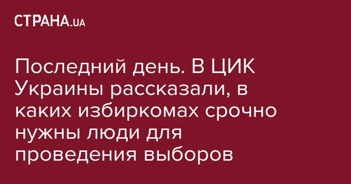 Последний день. В ЦИК Украины рассказали, в каких избиркомах срочно нужны люди для проведения выборов