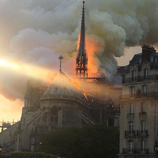 Во время пожара в Соборе Парижской богоматери (Нотр-Дам-де-Пари) обрушился шпиль.