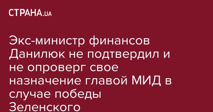 Экс-министр финансов и советник Владимира Зеленского Александр Данилюк не подтвердил, что в случае его победы на президентских выборах, сам он возглавит Министерство иностранных дел. Об этом Данилюк заявил в эфире передачи "Свобода слова" на телеканале ICTV, запись которой выложена в YouTube.
