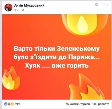 Правда, можно предположить, что пост Березовца был не таким уж случайным. Потому параллельно с ним много и других сторонников Порошенко решили привязать пожар к Зеленскому.