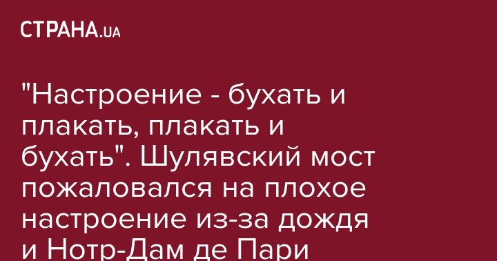 "Шулявка объявляет прощание с мостом открытым. Настроение бухать и плакать, плакать и бухать. "Па тундрееееееееее Па железнааай дарогеееееее... Полночный бред терзает душу мне опять. О, Эсмеральда, я устал уже стоять. Дождь, домкрат, Нотр Дам... бухать и плакать, плакать и бухать...", - написали на странице в социальной сети, пытаясь описать чувства, которые мог бы испытывать Шулявский путепровод.