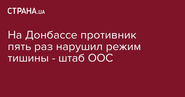 Во вторник, 16 апреля, противник пять раз нарушили "режим тишины" в районе проведения операции Объединенных сил на Донбассе. В том числе четыре раза с применением запрещенного минскими договоренностями вооружения, передает пресс-центр штаба ООС на странице в Facebook.