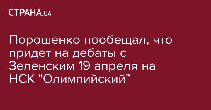 Порошенко пообещал, что придет на дебаты с Зеленским 19 апреля на НСК "Олимпийский"