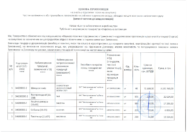 По данным издания, в тендере приняли участие два участника - ООО "Электротех" и ООО "НТП" Трансинвест ", чьи предложения отличались лишь на одну тысячу гривен, но" конкуренты "не снижали цены.
