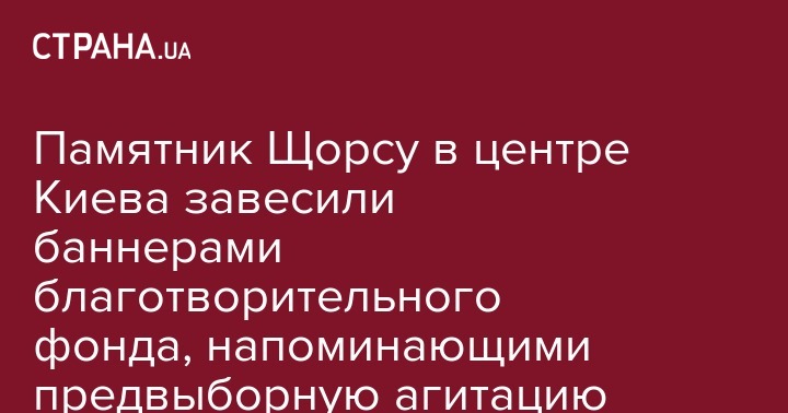 Памятник Николаю Щорсу в центре Киева, который не был демонтирован в ходе декоммунизации, завесили огромными баннерами.