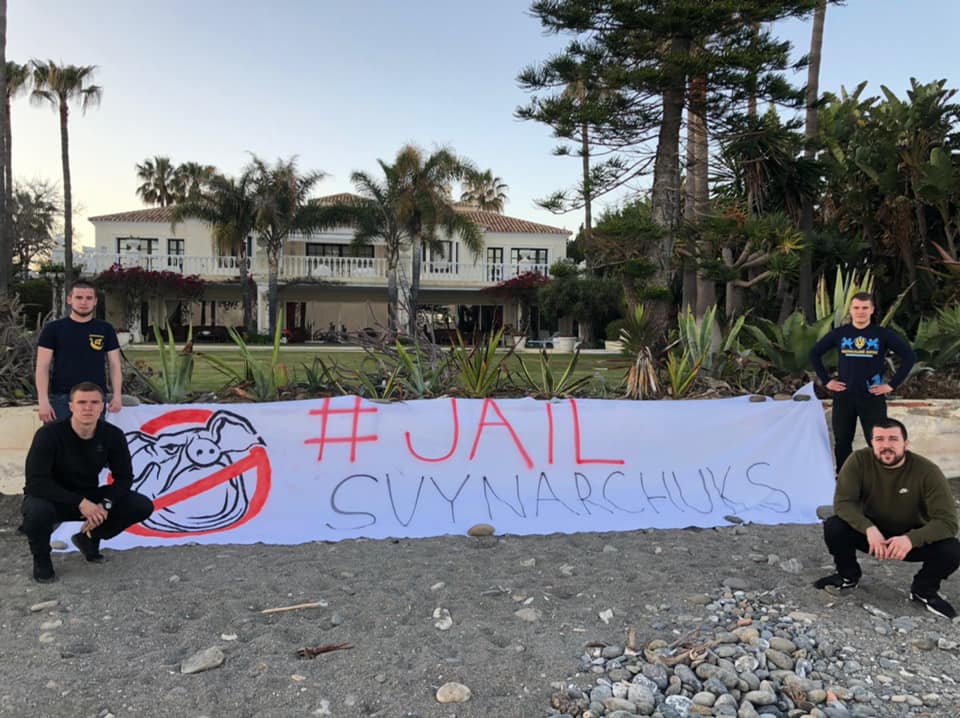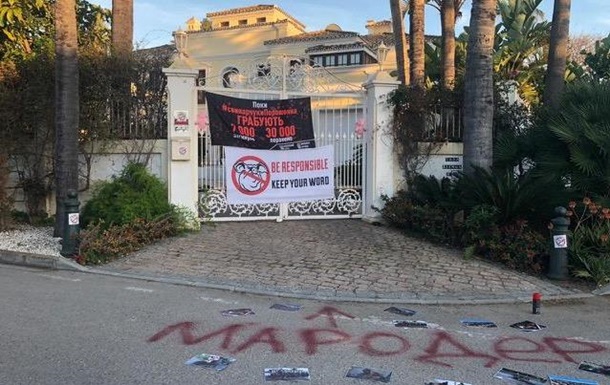Плакаты "Мародер", "Грабят" и "Держи слово". Нацкорпус посетил виллы Гладковского и Порошенко в Испании