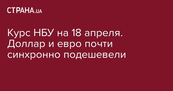Курс НБУ на 18 апреля. Доллар и евро почти синхронно подешевели