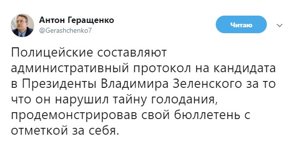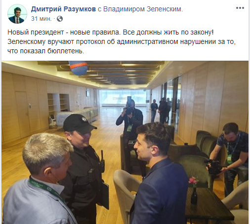 "На протяжении всей кампании команда Зеленского получала так называемую "поддержку" от российских пропагандистов и бывших украинских чиновников. Мы обойдемся как без этой поддержки, так и без их поздравлений", - сказал представитель штаба Зеленского Дмитрий Разумков.