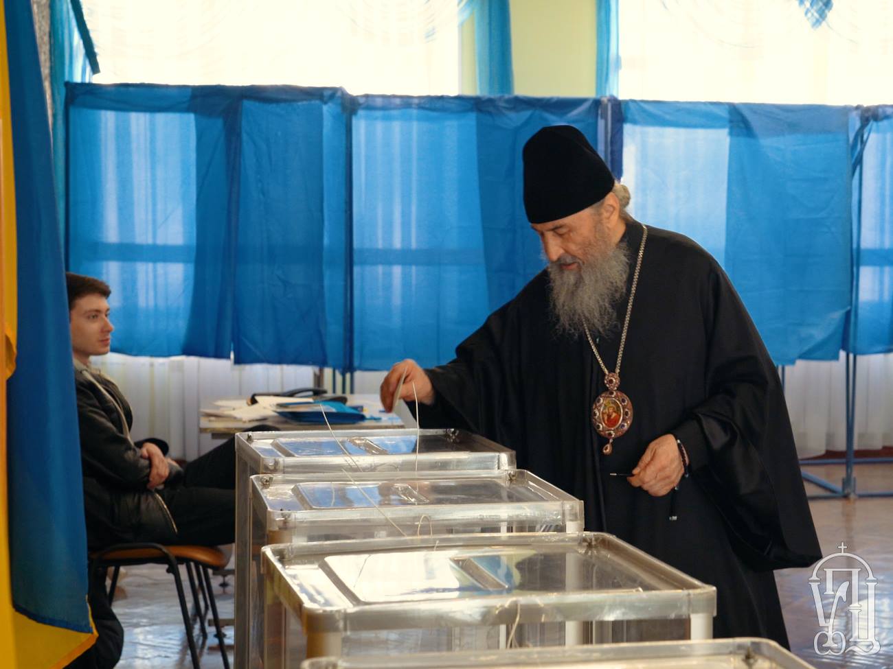 9:49 Управляющий делами УПЦ митрополит Антоний сходил на избирательный участок.