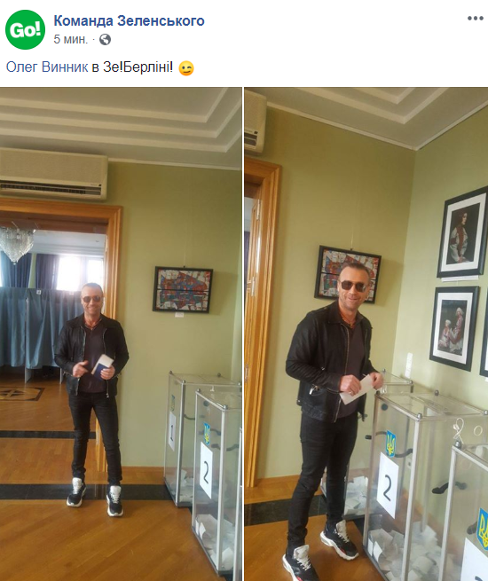 10:42 У Зеленского похвастали фото голосующего в Берлине Олега Винника. "У Порошенко есть Вакарчук, а у Зеленского Винник", - шутят в соцсетях.