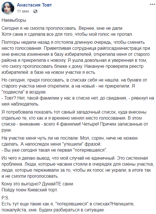9:38 В Николаеве на участке 480896 члены комиссии не допустили наблюдателя Комитета избирателей Украины. Ему не показали процедуру открытия сейфа с и изьятия бюллетеней.