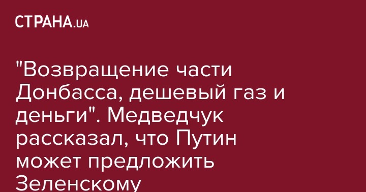 Медведчук настоятельно советует Зеленскому пойти на сделку с Москвой и обещает, что в таком случае Украина восстановит контроль над частью Донбасса и даже получит дешевый газ и ивестиции из РФ.