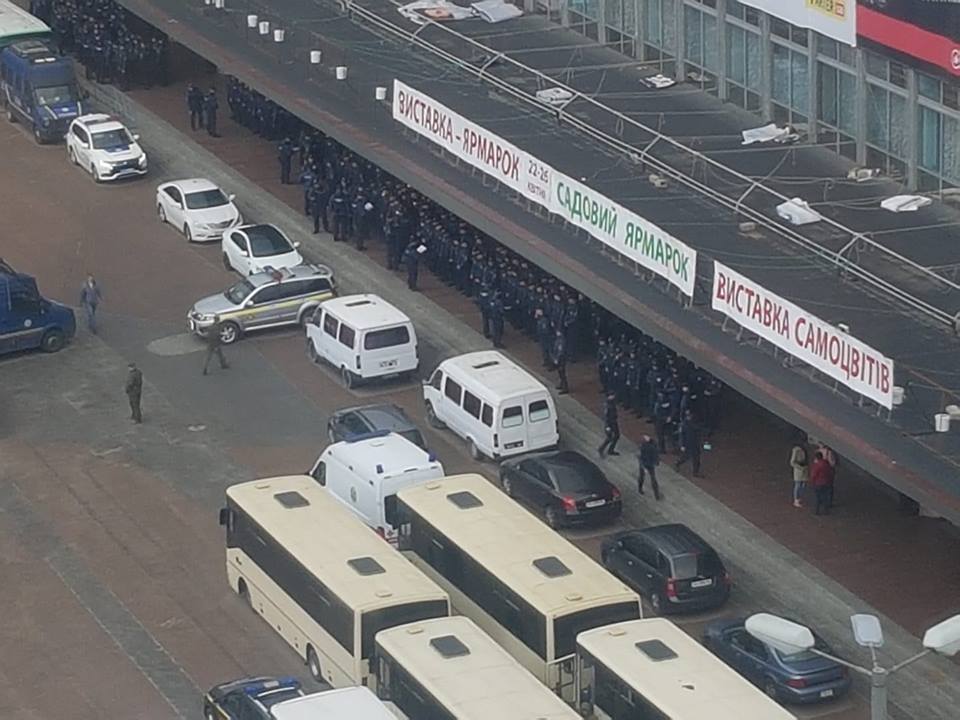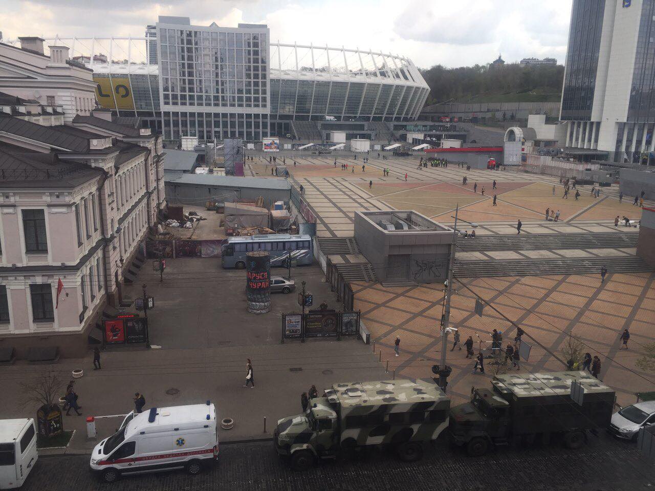 Также там замечена тяжелая техника. "Олимпийский, 11:30. Готовимся к войне?" - опубликовал фото журналист Дмитрий Коротков.