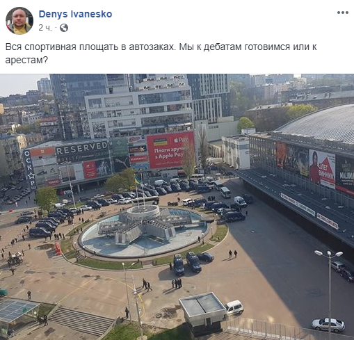 На площади перед стадионом припаркованы автозаки. Об этом сообщил журналист Денис Иванеско: "Вся спортивная площадь в автозаках. Мы к дебатам готовимся или к арестам?"
