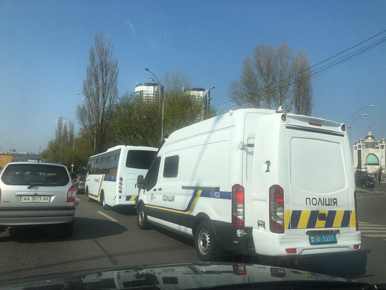 "Страна" сделала фото полицейских авто, которые направляются к НСК "Олимпийский" и в центральную часть столицы.