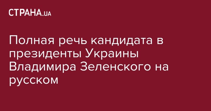 Согласно результатам жеребьевки, первым выступал Владимир Зеленский. "Страна" публикует полную речь кандидата в президенты Украины Владимира Зеленского на русском: