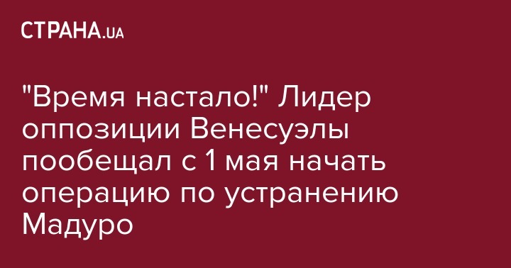 "1 мая мы начнем финальную фазу Операции "Свобода"", - написал он в Twitter. Гуайдо пообещал, что в первый день мая в демонстрациях против властей примут участие больше его сторонников, чем когда бы то ни было.