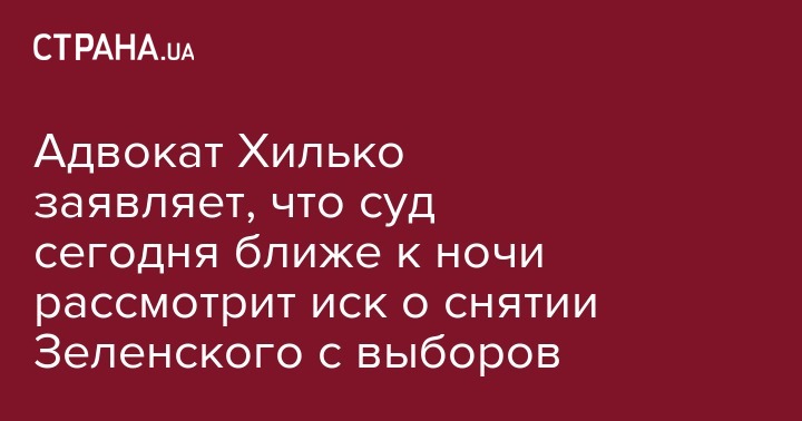 Адвокат Хилько заявляет, что суд сегодня ближе к ночи рассмотрит иск о снятии Зеленского с выборов