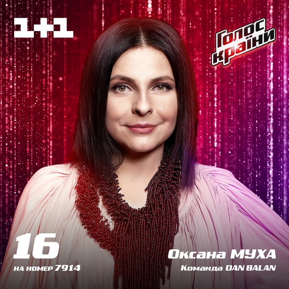 Оксану Муху называли самой чувственной финалисткой шоу. 37-летняя вокалистка из Львова сказала, что пришла, чтобы "не дать погибнуть песням" легендарной Квитки Цисык. На "Голосе" Оксана попала в команду к Дану Балану. Молдавский исполнитель признался, что благодаря своей подопечной увидел красоту украинской культуры.