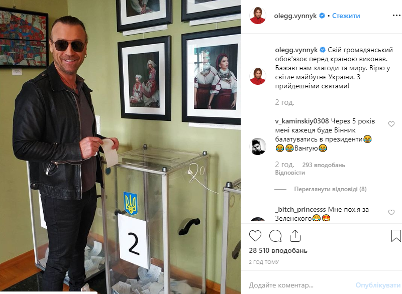 "Свой гражданский долг перед страной выполнил. Желаю нам согласия и мира. Верю в светлое будущее Украины. С наступающими праздниками!", - написал артист в Instagram.