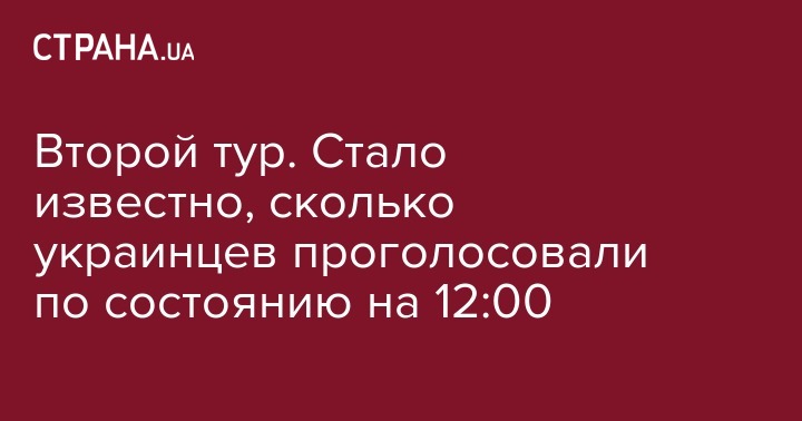 Гражданская сеть "Опора" сообщает о явке во втором туре выборов главы государства на уровне в 25,7% и по состоянию на 12:00, передает "Интерфакс-Украина".